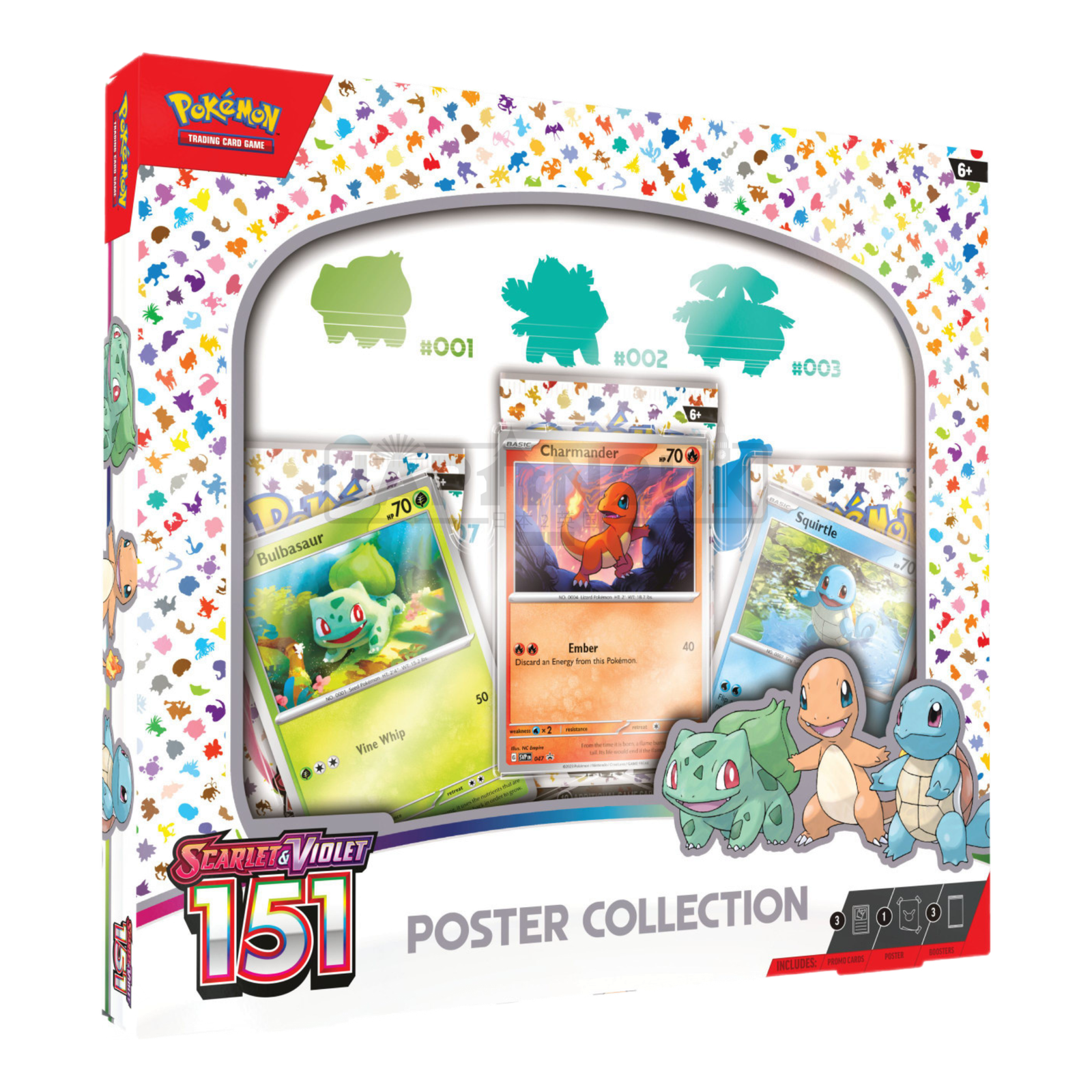 - x3 Promo cards featuring Bulbasaur, Charmander, Squirtle